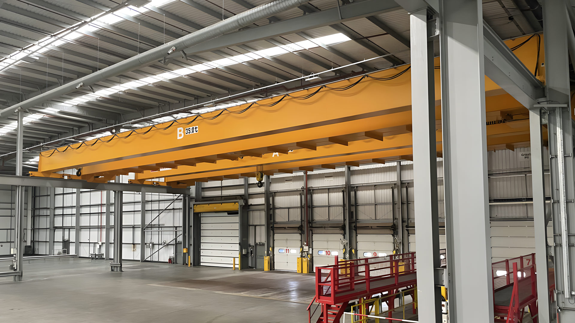 6. 根據(jù)起吊貨物的不同,起重機可配備吊梁磁鐵或電磁吸盤或抓斗或C型鉤;