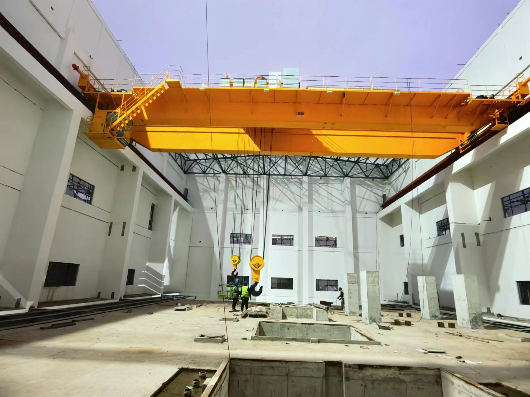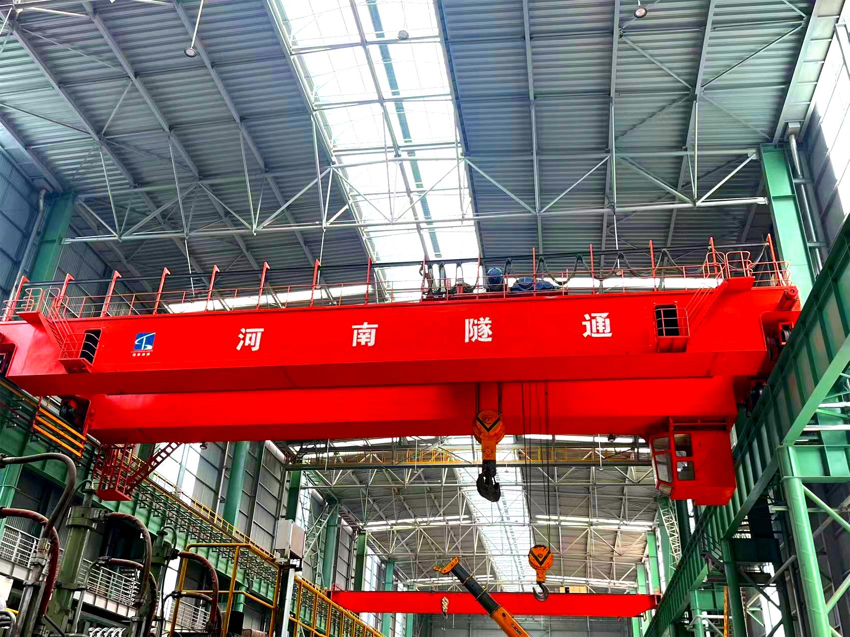 QE型通用橋式起重機依據GB/T14405-2011標準所設計、制造.該型號起重機是在QD型起重機基礎上設有兩臺起重小車,其可以單獨工作,也可以聯(lián)臺動作,適用于工礦企業(yè)車間及鐵路、港口碼頭等貨場吊運長件物品。